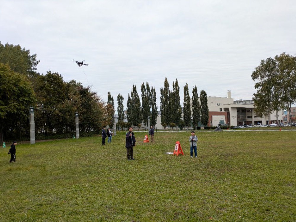 当日は、当会会員のほか、株式会社旭川システムサービス様による測量機器の展示・説明、荒木測量設計株式会社様による大型ドローンのデモフライトや記念撮影の協力をいただきました。体験してくださった皆さまからは「子供が興味をもってました」「ドローンが楽しかった」といった多くの喜びの声を頂戴し、会員一同大変うれしく思っております。