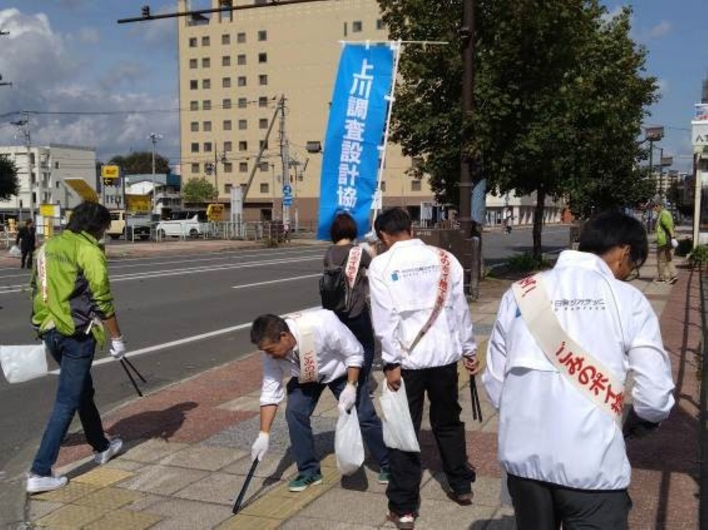 協会員31社205名が参加し、旭川市内中心部の「秋季街頭啓発及びごみ拾い」を行いました。 旭川市は毎年春と秋に「クリ-ン旭川運動」を展開しています。その一環として実施している「ゴミのポイ捨て禁止運動」に参加しました。当協会は、2006年度より協会の事業計画として積極的に支援しています。秋晴れの中、協会員とその家族が4~7条通りの6丁目周辺を車や歩行者に注意を払いながら、空き缶・吸い殻などのごみを拾い集めました。終了後、旭川市民文化会館にて集合写真を撮影、参加者全員心地よい1日を過ごすことが出来ました。